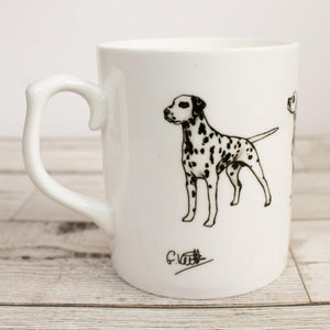 Each delicate bone china mug is hand-printed with original Dalmation spotty dog illustrations by renowned animal artist, Gemma Keith.
