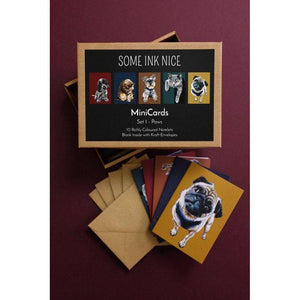 10 Small but perfectly formed colourful Cat Dog & Kitten message notelet cards.