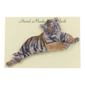 Hand-cut in the UK from compressed wood and featuring a cute image of a Tiger Cub lying down.