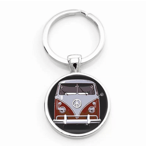 A stunning gift for any VW Campervan owner, fan or enthusiast. This metal loop keyring with coloured Volkswagen split screen camper style van, encapsulated in clear domed protective glass.