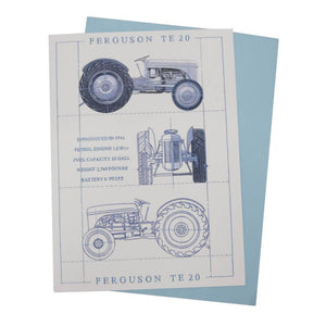 Featuring the 1946 TE20 Ferguson vintage tractor (the "little grey fergie") in front, side and back aspects, printed on both the front and back, each of these tractor cards measures 7" x 5" and comes in sealed packaging with envelope.